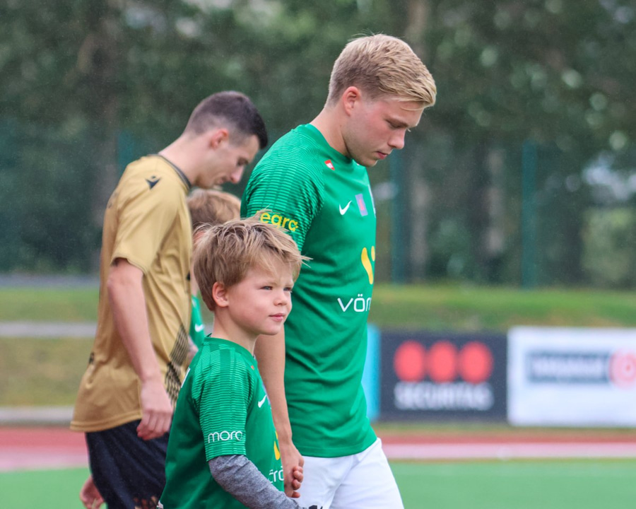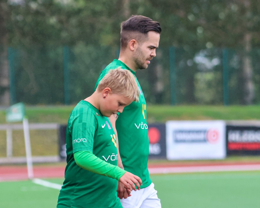 Oliver gerir vel og eltir menn uppi og sparkar boltanum frá