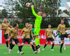 Hornspyrna strax í kjölfar marksins og Kleimint á skalla í stöngina