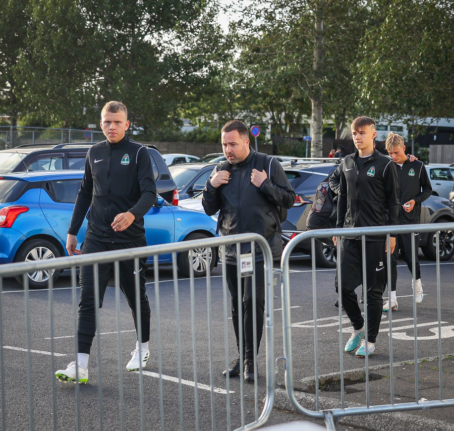 Það eru 25 mínútur til leiks þegar skýrslan kemur inn. Nú mæta Blikar svo á rútu. Klæddir í búning og klárir í slaginn.