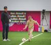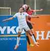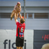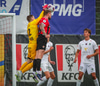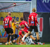 Pablo tekur aukaspyrnu sem Gunnar Vatnhamar skallar í átt að marki en Brynjar ver glæsilega.