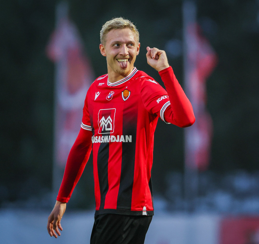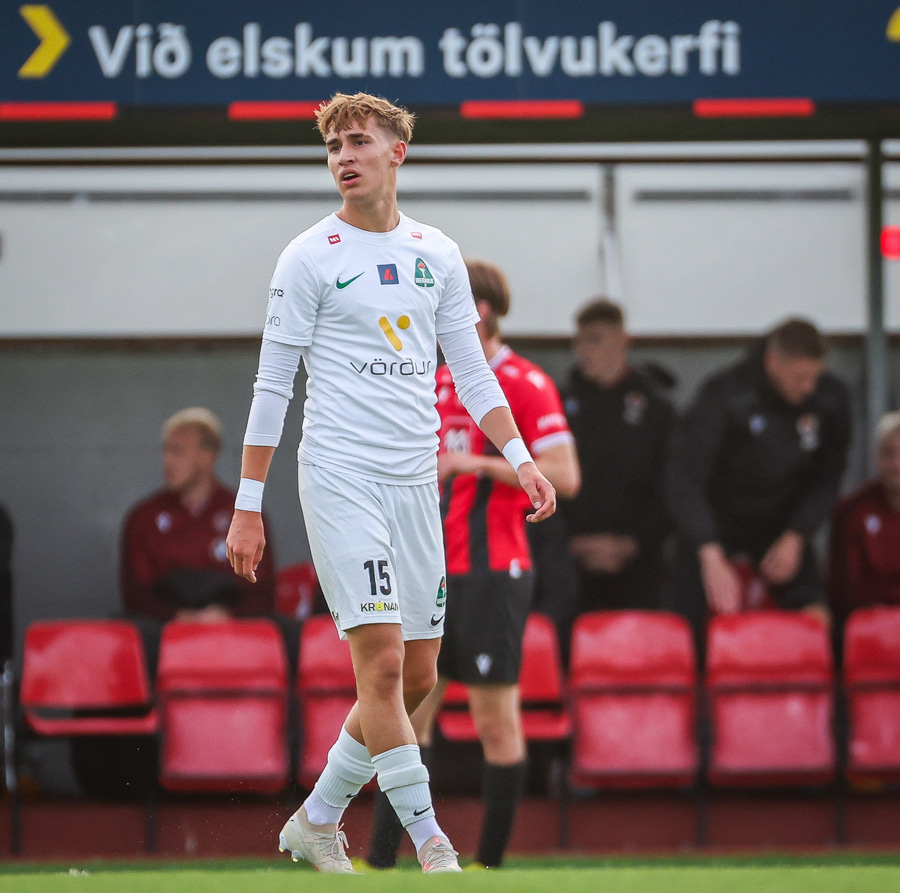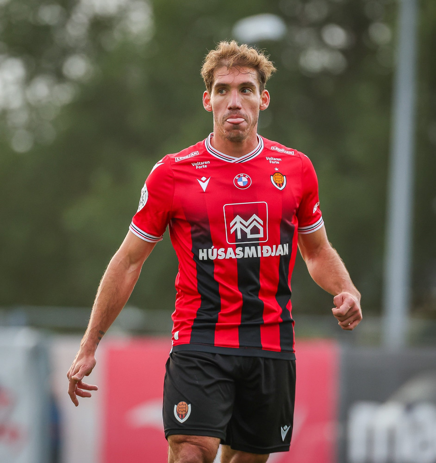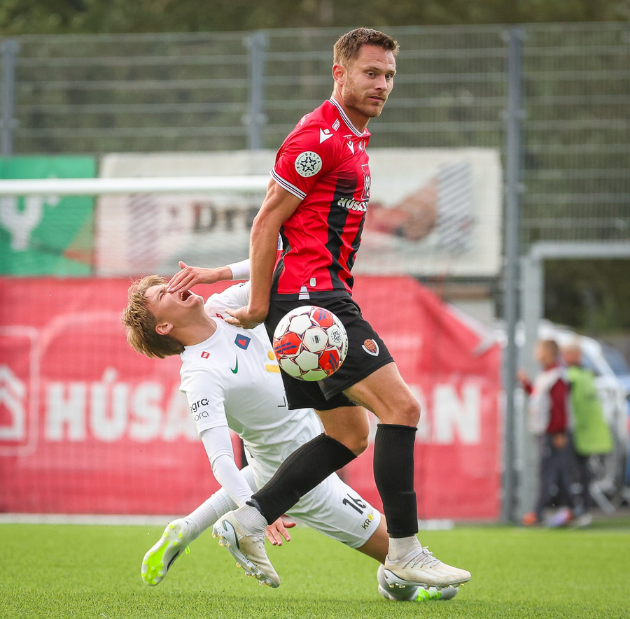 90+3 Brýtur á Karli Friðleifi og er á leið í bann eftir þetta spjald. Liggur sjálfur eftir og þarf aðhlynningu