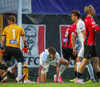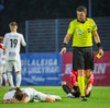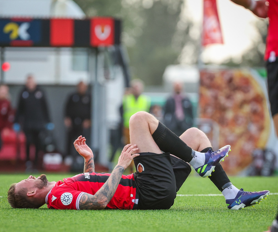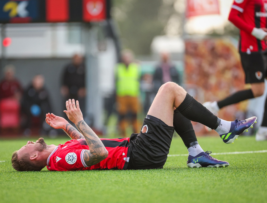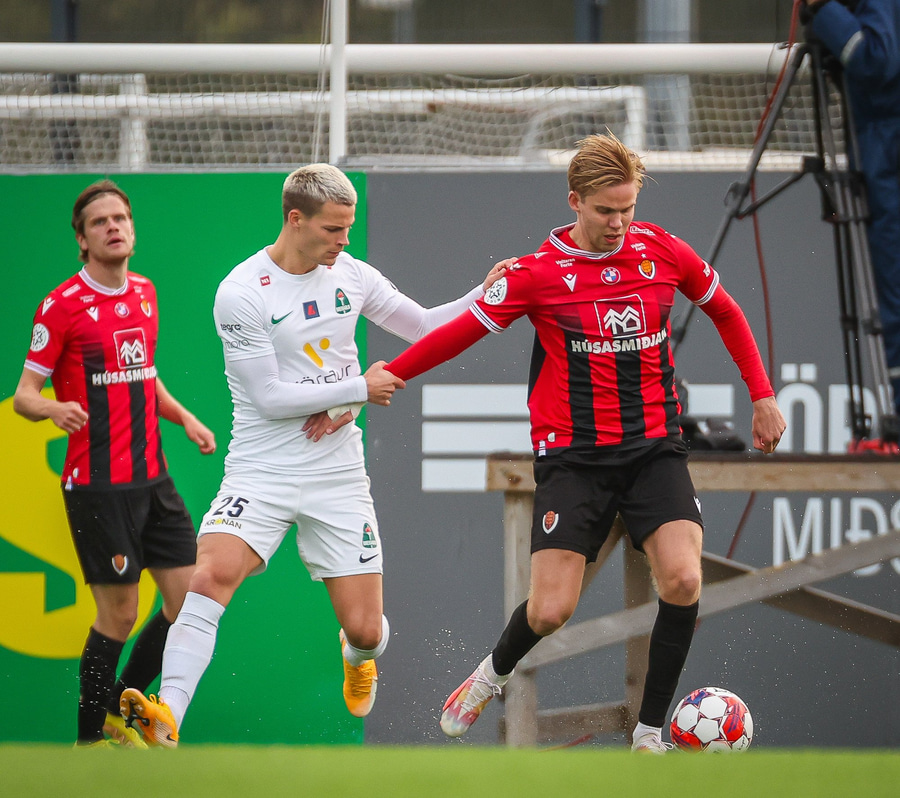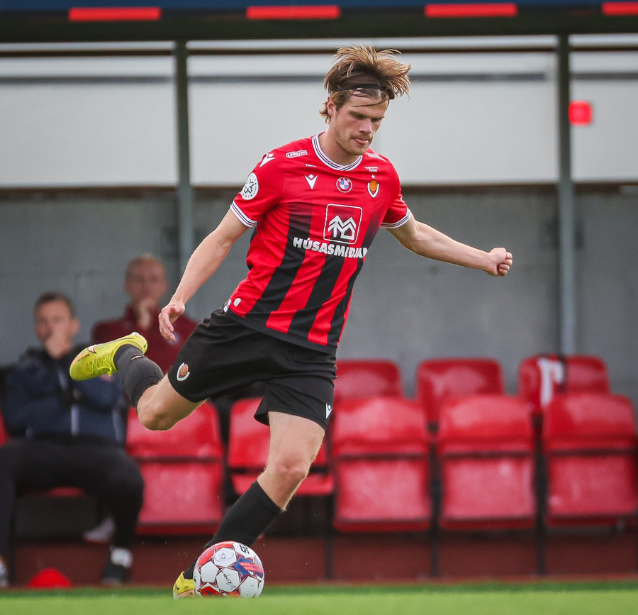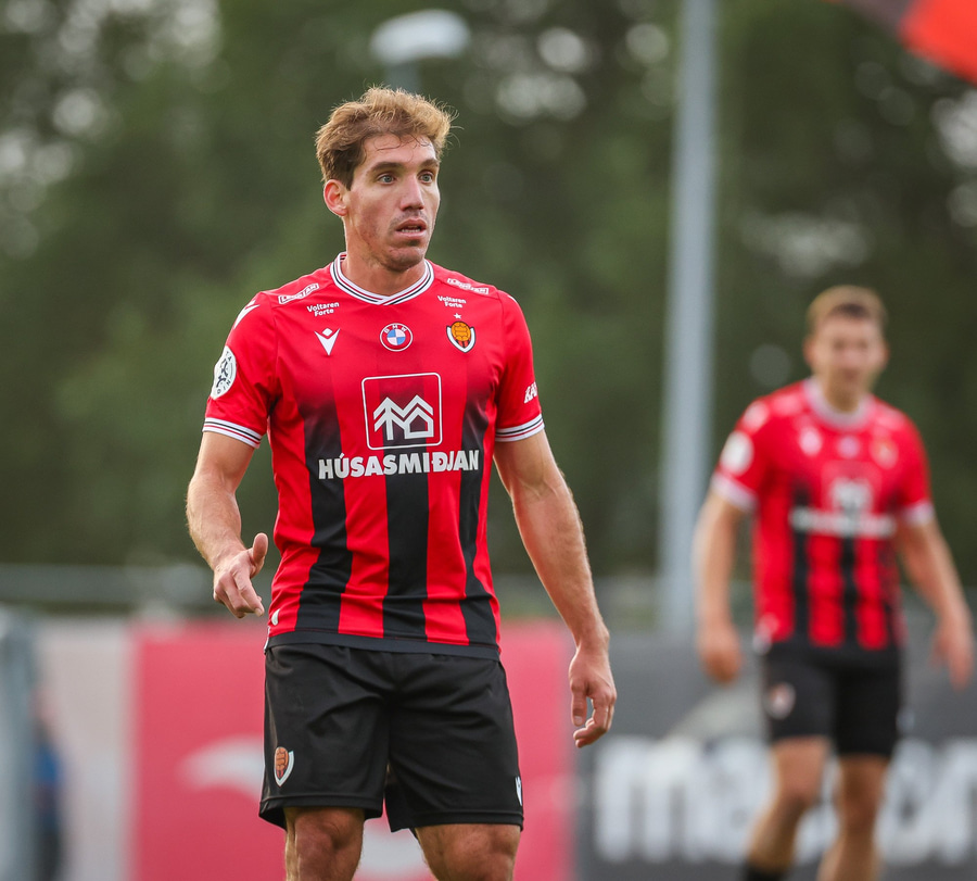 90+3 Brýtur á Karli Friðleifi og er á leið í bann eftir þetta spjald. Liggur sjálfur eftir og þarf aðhlynningu