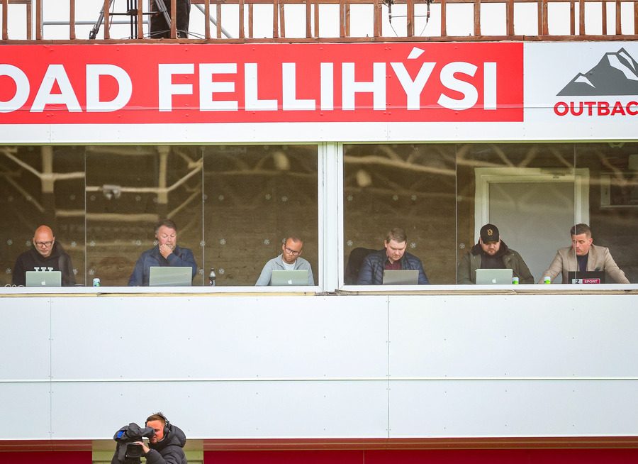 Það er mjög vel mætt í stúkuna. Hugsa að það sé uppselt