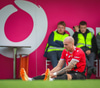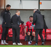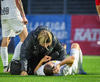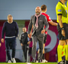 Í annað sinn í leiknum. Virðist vera meiddur á ökkla. Sýnist Helgi Guðjóns vera að koma inn á fyrir hann.