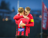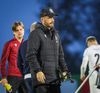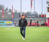 Nú þegar það er loksins orðið ljóst að leikurinn fari fram er hægt að fara að einbeita sér að því sem er framundan. Víkingar eru farnir inn í klefa í sínum lokaundirbúningi fyrir leikinn. Blikat virðast hinsvegar ætla að taka bara spjallið úti á vellinum.