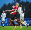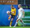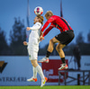 Nikolaj Hansen með skalla eftir fyrirgjöf frá Davíð Erni. Skallinn hinsvegar laus og fer framhjá.