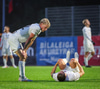 Leikurinn stopp eftir að Dagur Örn Fjeldsted liggur eftir baráttu við Matthías Vilhjálmsson. Virðist fá smá högg á andlitið. Ekkert alvarlegt samt