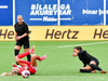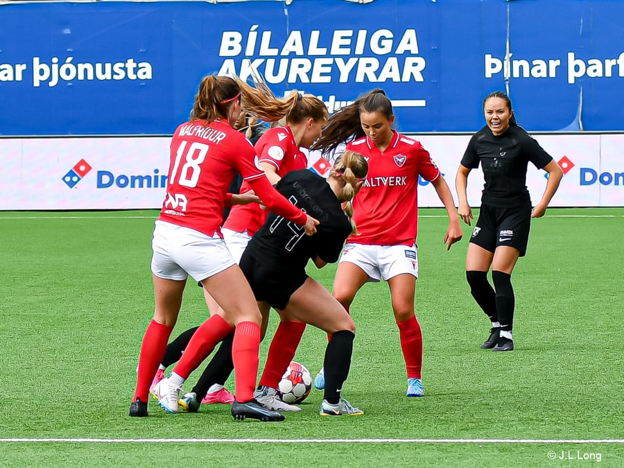 Colleen Kennedy missir boltann þegar hún tekur innkast og ólöglegt innkast dæmt. Svolítið súmmerar þennan leik upp hingað til.
