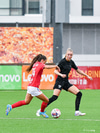 Alma reynir skot fyrir utan teig en Þórdís Elva gerir vel í því að koma sér fyrir boltann.