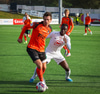 Fylkismenn byrja með boltann og sækja í átt að Árbæjarlaug.