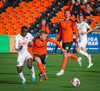 Benni ógnar hér vinstra megin í teignum, leitar inn á miðjan teiginn og gefur boltann á Nikulás. Hann reynir skot sem Guy ver út til Birkis sem á skot yfir markið.