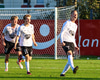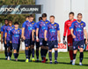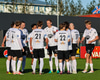 Þá ganga liðin til vallar og takast í hendur. Stúkan er að fyllast hægt og rólega en mætingin mætti vera betri þegar það eru 2 mínútur í leik.
