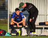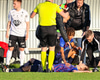 Andi Hoti liggur eftir. Það hlaupa allir af bekk Aftureldingar í áttina að honum og hann hristist mjög. Þetta lítur ekki vel út og vonandi er allt í lagi með hann.