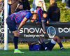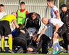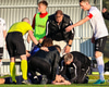 Hann er ennþá ekki staðinn upp en báðir sjúkrarþjálfarar hjá báðum liðum eru að aðstoða hann.