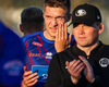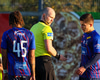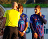 Andi Hoti mjög skiljanlega tekinn af velli en hann er alls ekki sáttur með að hafa verið tekinn af velli.