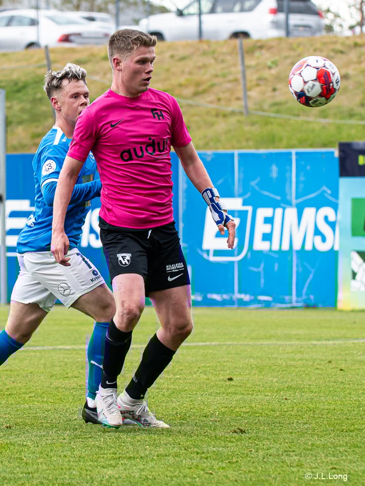 Haraldur Einar kemur botlanum á Vuk í teignum sem er í fínu færi en fast skot hans er beint á Árna.