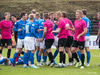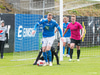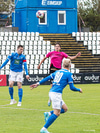 Finnur sendir til baka á Daða en á ekki von á því og boltinn fer næstum í netið en Daði ver með höndunum.