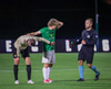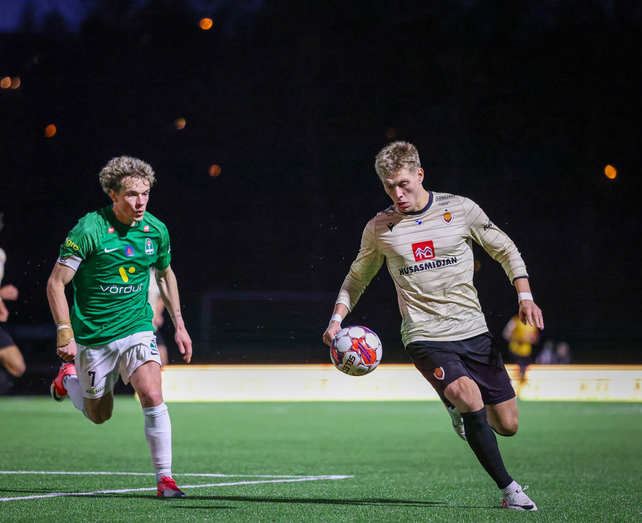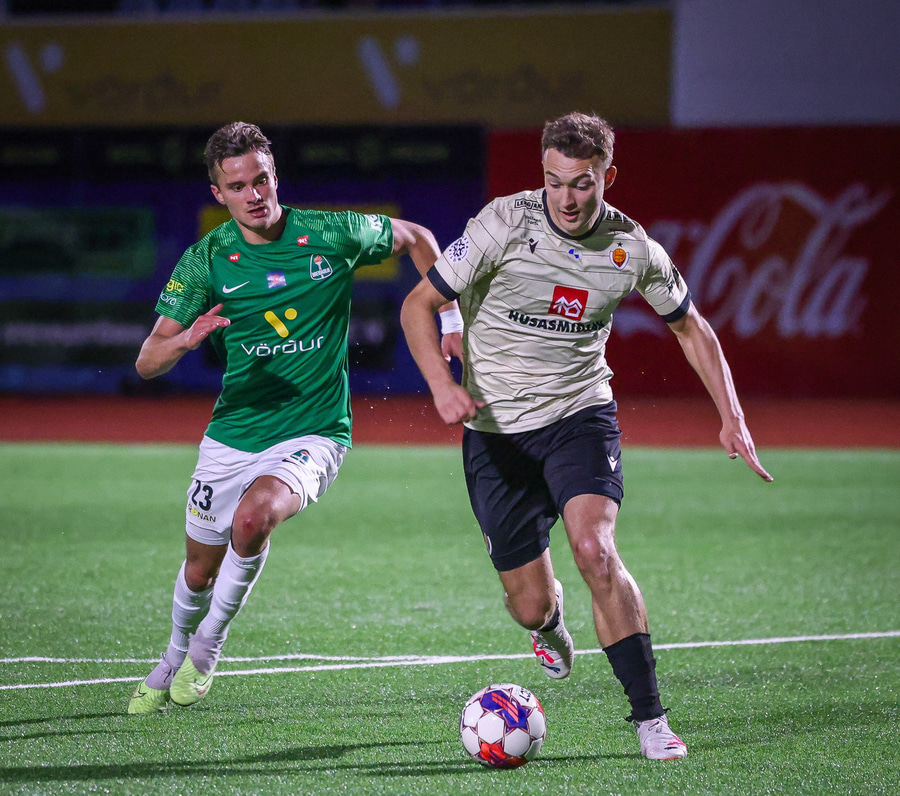 Stuttu fyrir spjaldið voru Blikar að ógna en Erlingur Agnarsson reyndi skiptingu sem fór af Blikum og innfyrir þar sem þeir voru mættir 3v3 en Höskuldur náði ekki að finna Klæmint inni á teig.