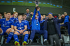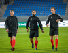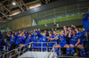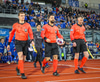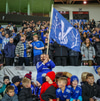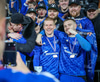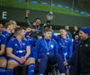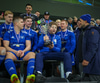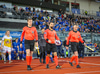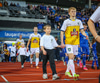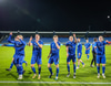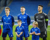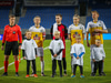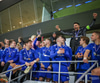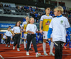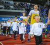 Liðin ganga inn á völlinn við mikið lófaklapp, nú styttist í að þessi veisla hefjist!