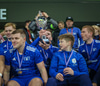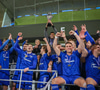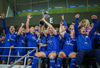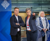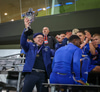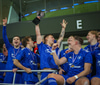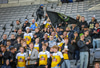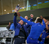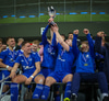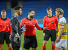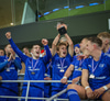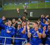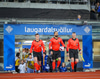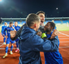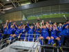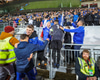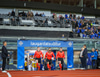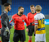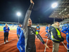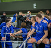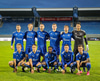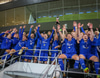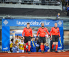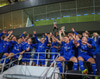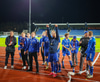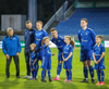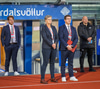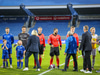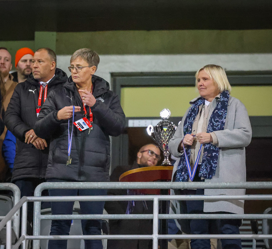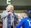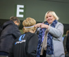 Vanda Sig, formenn félaganna og heiðursgestir taka í hendur á leikmönnum.
