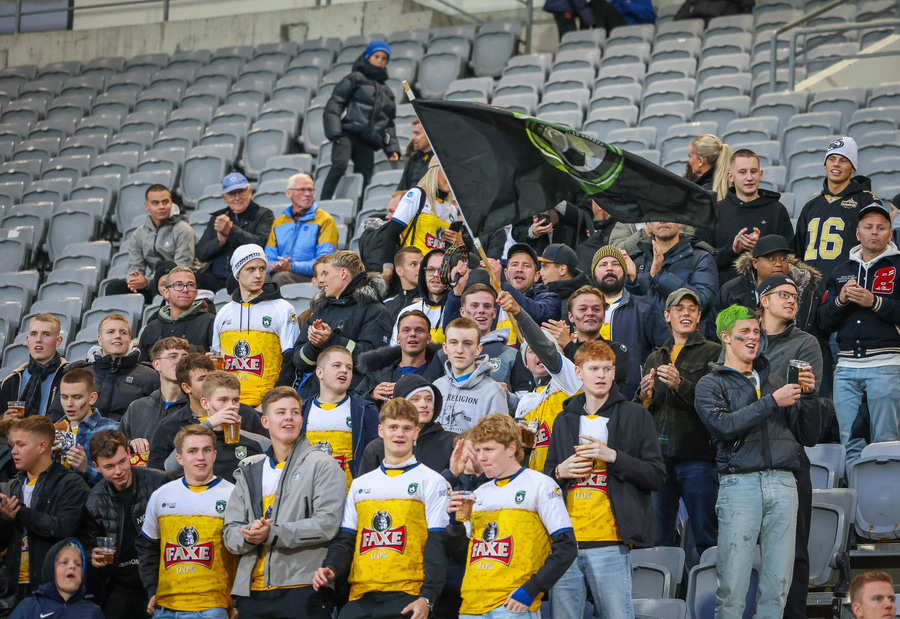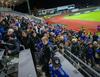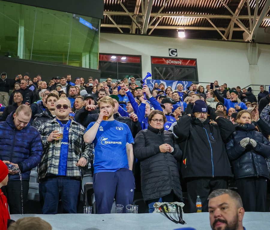 Stuðningsmenn beggja liða byrjaðir að syngja og tralla 30 mínútum fyrir leik, til fyrirmyndar.