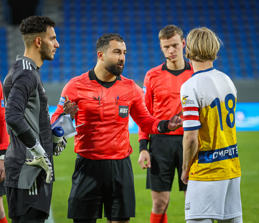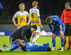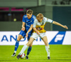 Paolo brýtur á Barðdal og fær réttilega gult.