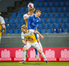 KFG með áhugaverða útfærslu á horspyrnu sem endar með skalla á markið en Joaquin grípur boltann auðveldlega.