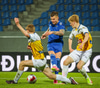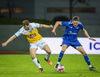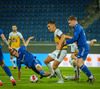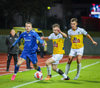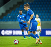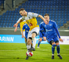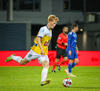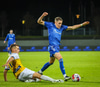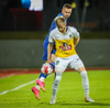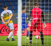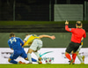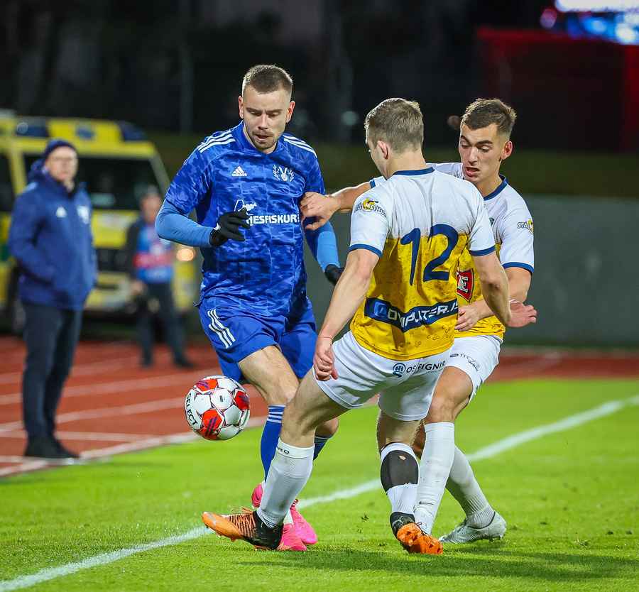 Adrían Valencia sloppinn einn í gegn en Joaquin Sinigaglia markvörður Víðis sér við honum og ver vel.