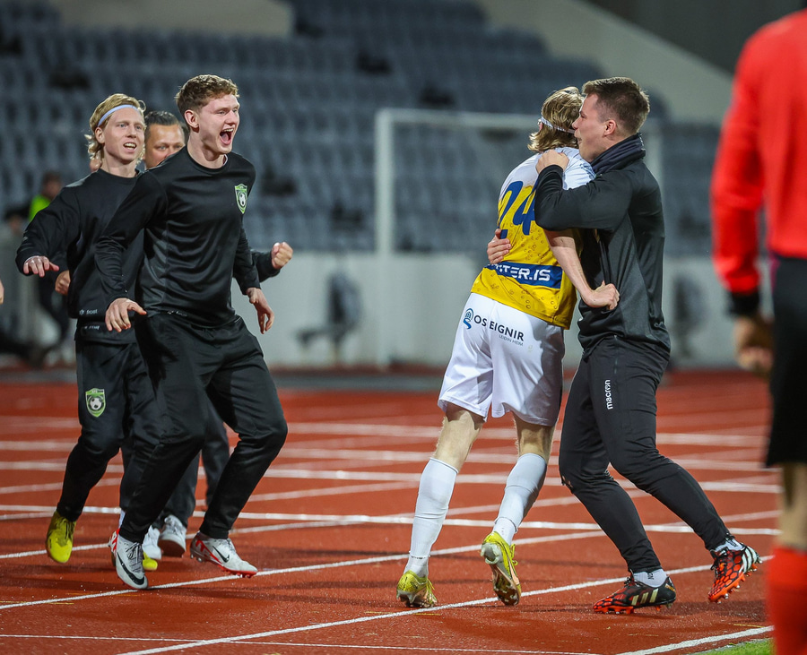 Kári Péturs rennir boltanum í gegn á Ólaf Bjarna sem klappar boltanum aðeins, sker á vinstri og smellir boltanum út við fjærstöng.