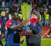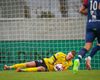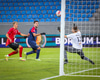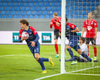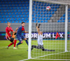 Þvílikt mark, Sergine Fall með sturlaða utanfótarsendingu á fjær og Iker Hernandez tæklar hann utanfótar í þaknetið