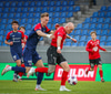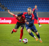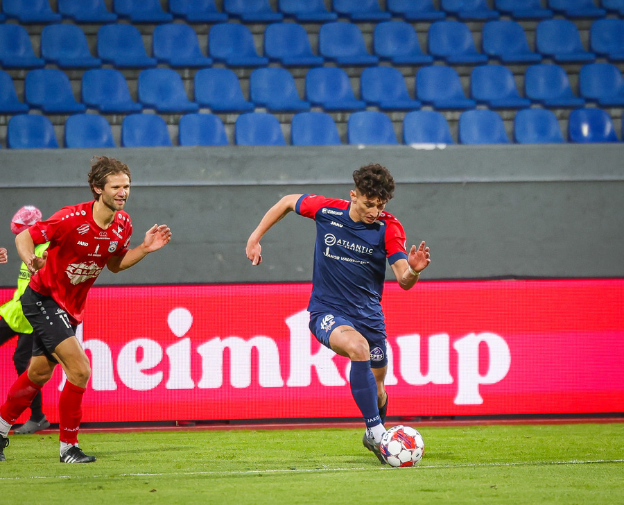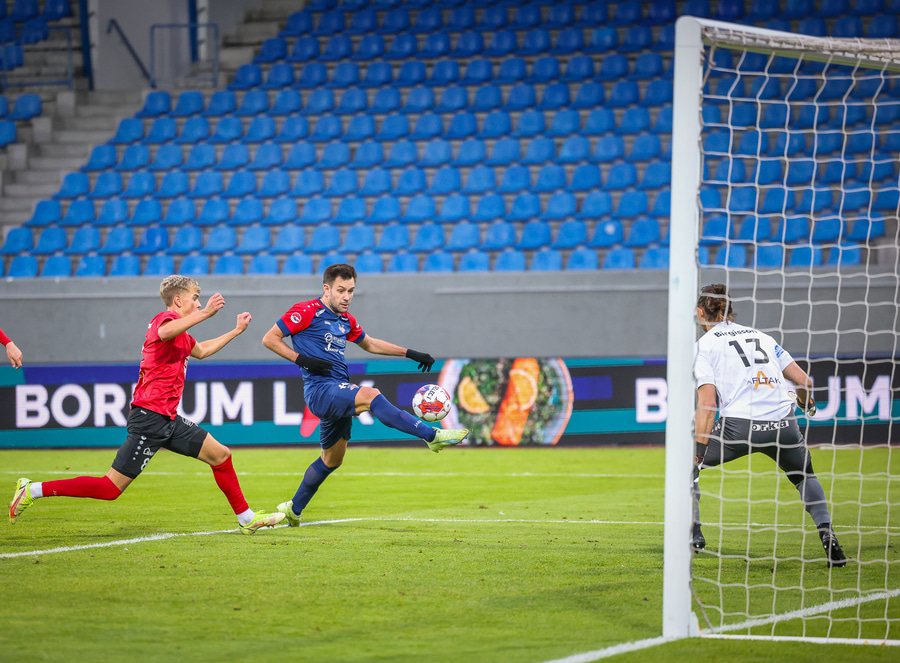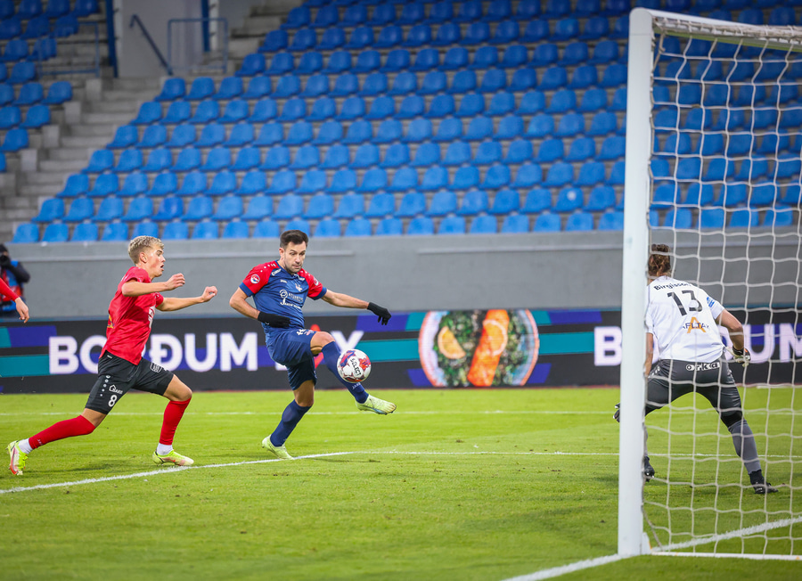 Elmar Cogic með frábæra takta á hægri kantinum og sólar Elvar Baldvins upp úr skónum og á sendingu fyrir markið en Tarik Ibrahimagic sparkar frá