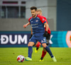 Elmar Cogic fær boltann hægra megin fer inn á völlinn og á skot beint á Marvin Darra sem handsamar þetta auðveldlega