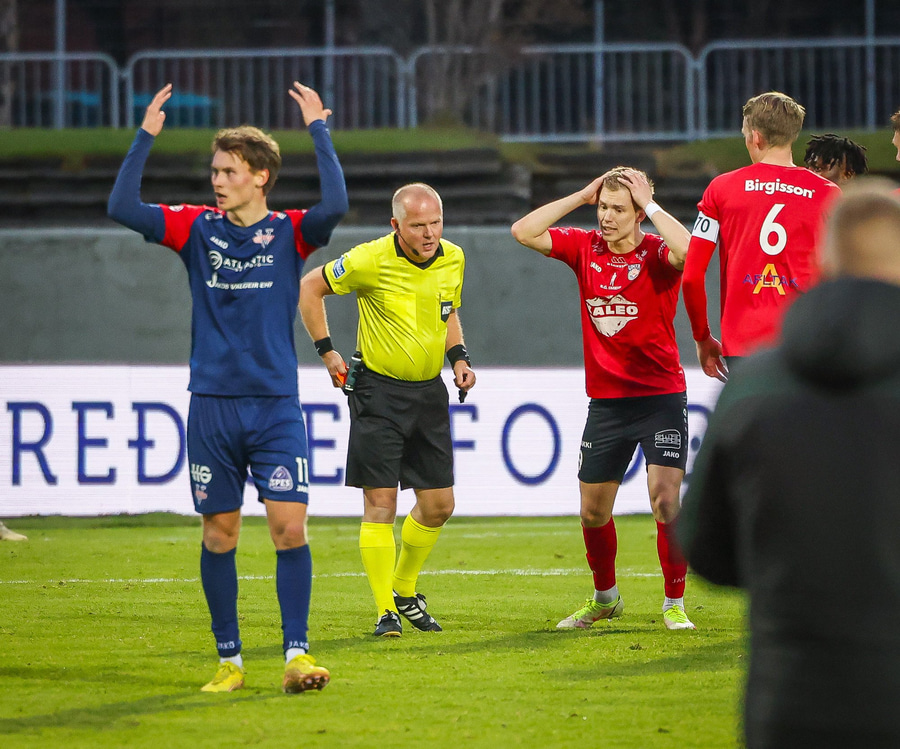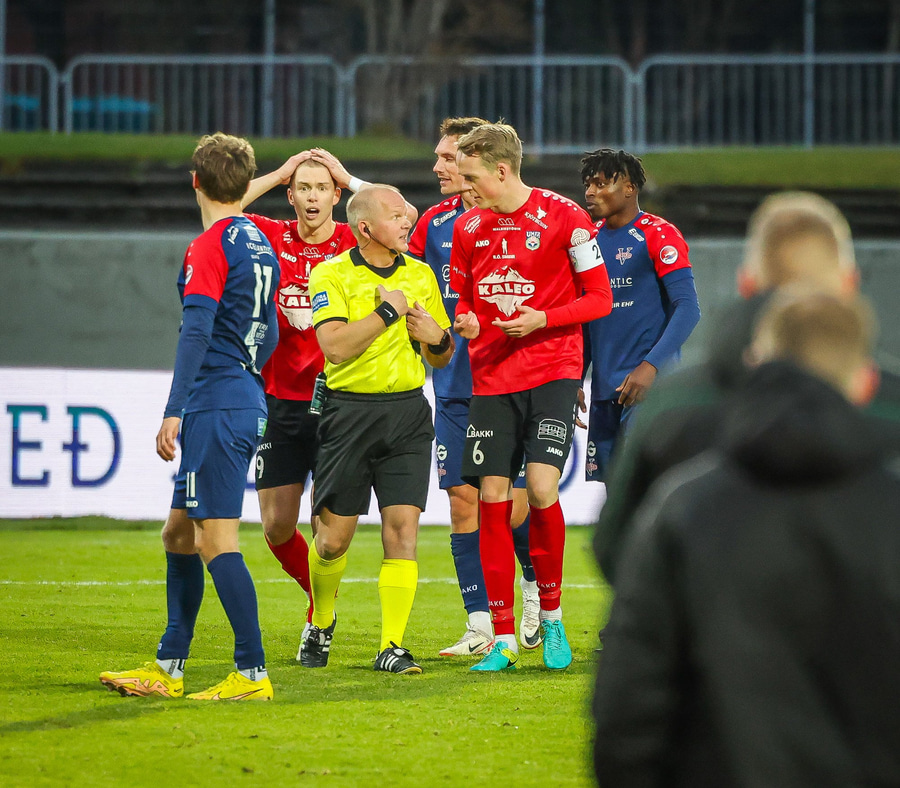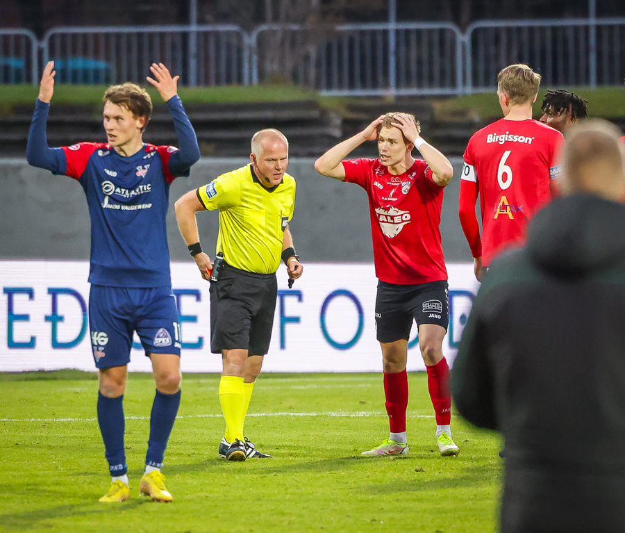 Morten Hansen er að fara fá gult spjald og af einhverri ástæðu kemur Andri Freyr Jónasson og keyrir í bakið á Morten Hansen og ýtir honum
