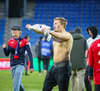 „Nei ég get ekki verið sammála því. Sérstaklega því grasið er svona gott. Tölfræðin okkar á grasi í sumar held ég að sýni að það hjálpar þeim ekkert frekar en okkur," segir Aron.