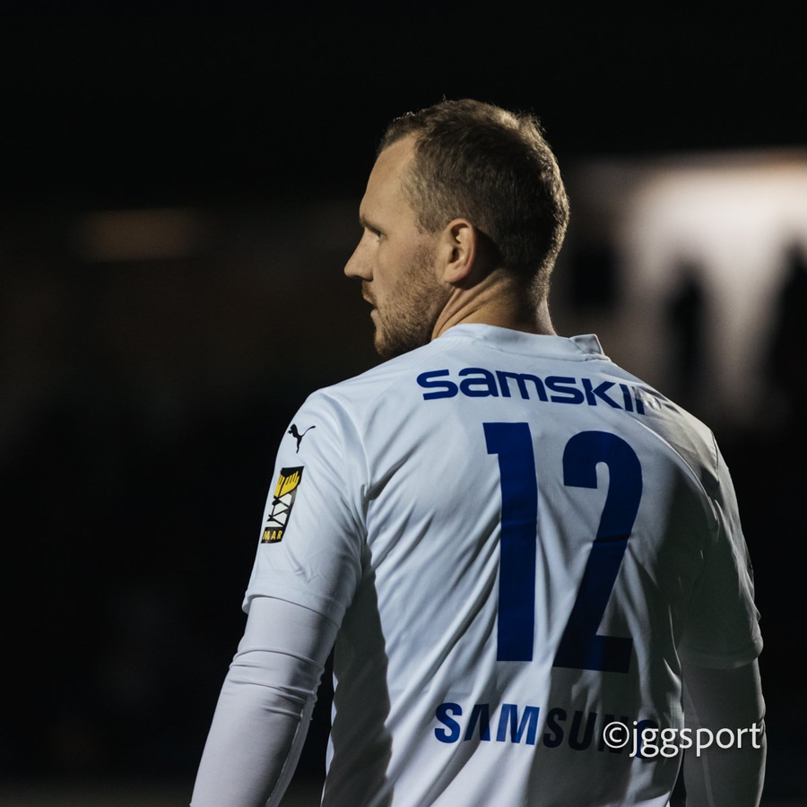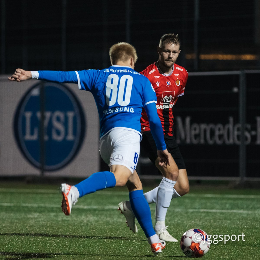 Niko Hansen battar boltann skemmtilega á Erling sem tekur skotið í teig Stjörnunnar en boltinn fer rétt yfir.