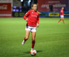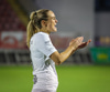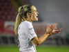 Amanda tekur spyrnuna á nær. Þar er Arna Sif mætt í baráttuna og reynir að troða boltanum inn fyrir línuna en setur hann yfir markið.