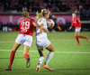 Agla tekur spyrnuna en ekkert kemur úr henni. Hún var slök og dreif ekki yfir fyrsta varnarmann.