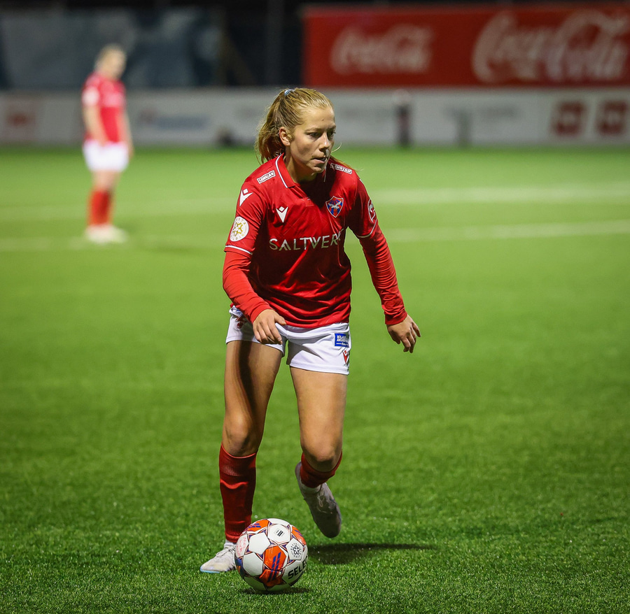 Tvær Blikakonur komnar einar í gegn á móti Fanneyju. Neinei þa sprettir hún upp völlinn og bara tekur boltann af Vigdísi Lilju og kemur honum aftur í spil. Þetta var helvíti nett, viðurkenni það.