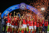 Breiðablik stendur hér heiðursvörð fyrir Íslandsmeistarana. Bæði karla og kvenna lið Breiðabliks núna búin að standa heiðursvörp á skömmum tíma.