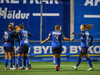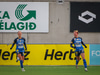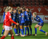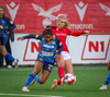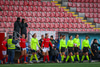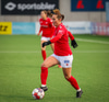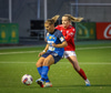 Valur í sínum rauðu og hvítu búningum og SKN St. Pölten í bláu.