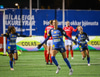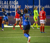 Sarah Mattner ber boltann upp völlinn og finnur Rita Schumacher til vinstri. Hún kemur svo með bolta fyrir markið sem Valentina stangar í fjær.