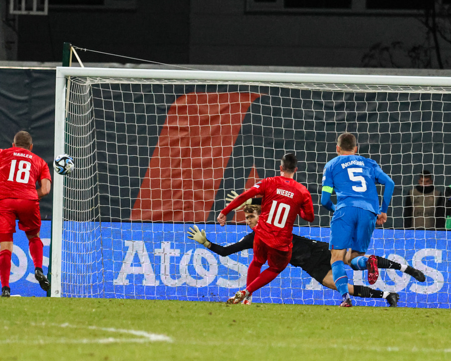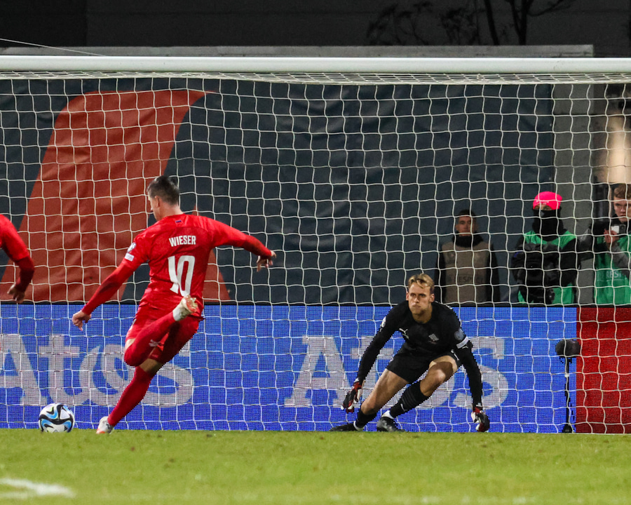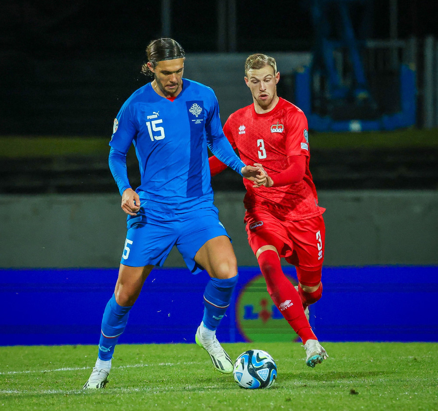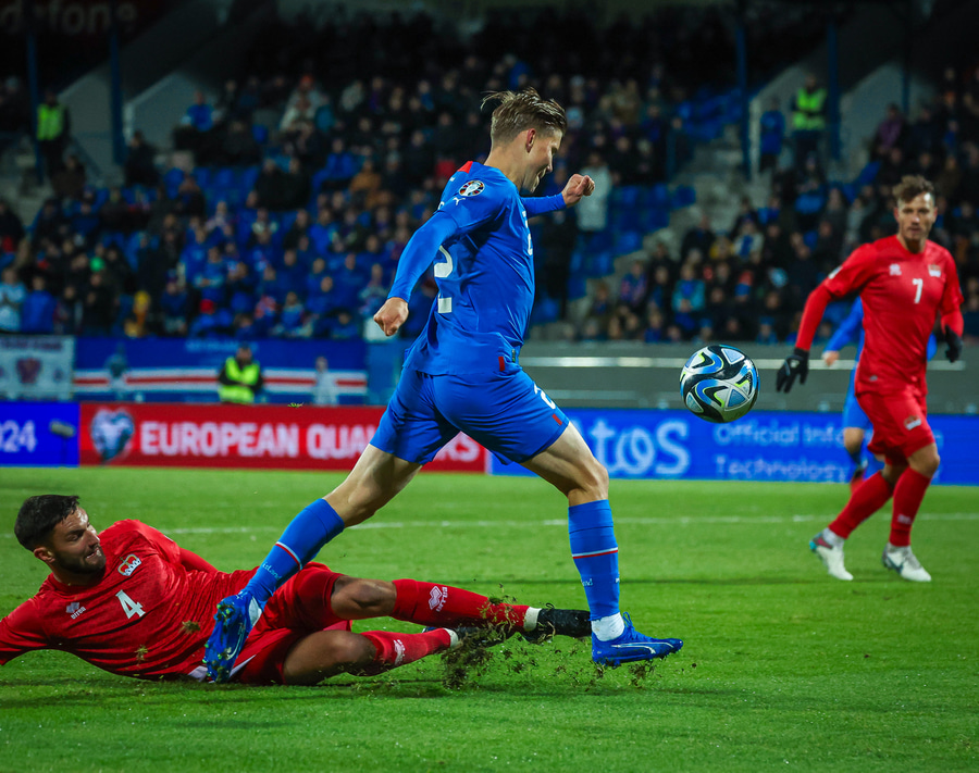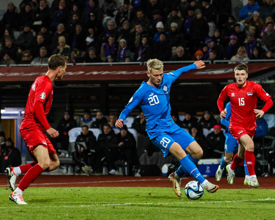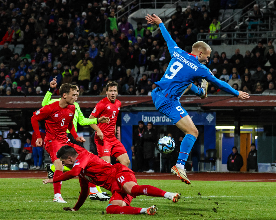 Arnór Ingvi finnur Jón Dag sem stingur Hákoni Arnari í gegn í fyrsta og hann lyftir boltanum skemmtilega yfir Benjamin Buchel í marki Liechtenstein.