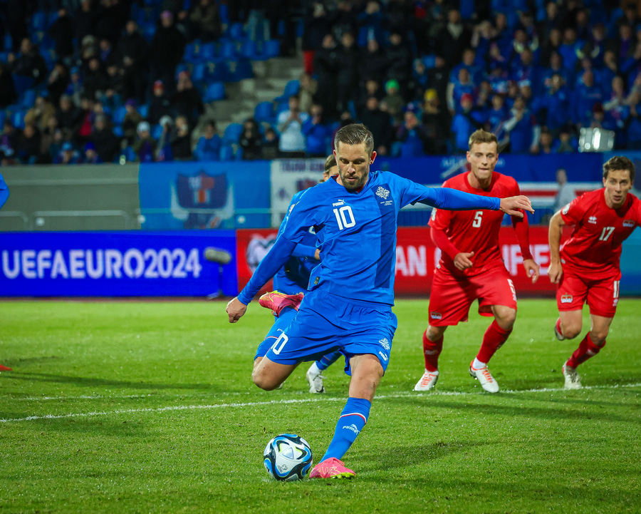 Þú sérð það bara i augunum á Gylfa að það er bara eitt sem hann sættir sig við - og það er markametið. Mentality sem þú kennir ekki. Hann mun alltaf skora annað i þessum leik.