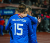 Boltinn hrekkur til Hákons Arnar sem leggur boltann á Arnór Ingva og hann finnur Gylfa sem er aleinn í teignum og leggur hann svo í hornið fjær!