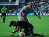 Leikurinn verið stopp í rúma mínútu. Gabriel García þurfti á aðhlynningu að halda.