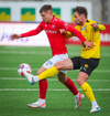 Steinar fær boltann út til hægri og setur boltann inn á teiginn þar sem Viktor er aleinn og potar boltanum rétt framhjá.