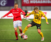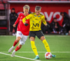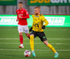 Viktor Jóns að gera sig líklegan. Fær boltann i teignum og nær skoti en Schram ver.
