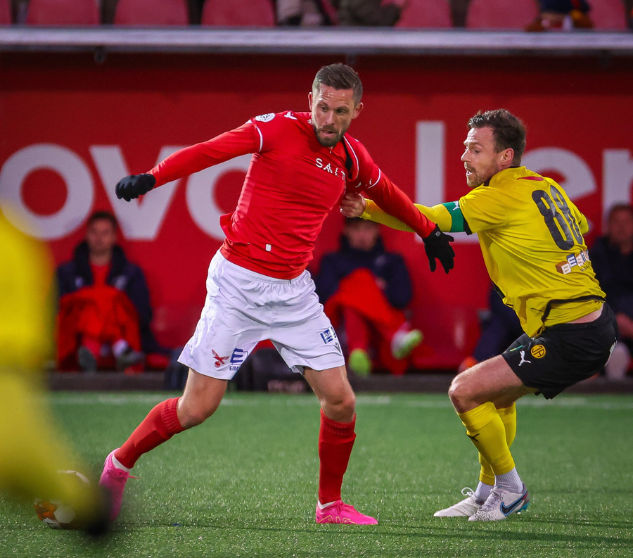 Hálftími í leik, Tryggvi og Arnór Smára tóku innilegt Skagamannaknús, fyrrum liðsfélagar úr Val. Gylfi hefur ekki enn látið sjá sig.