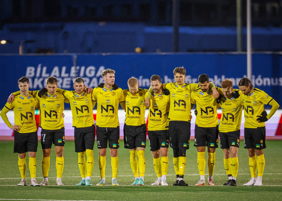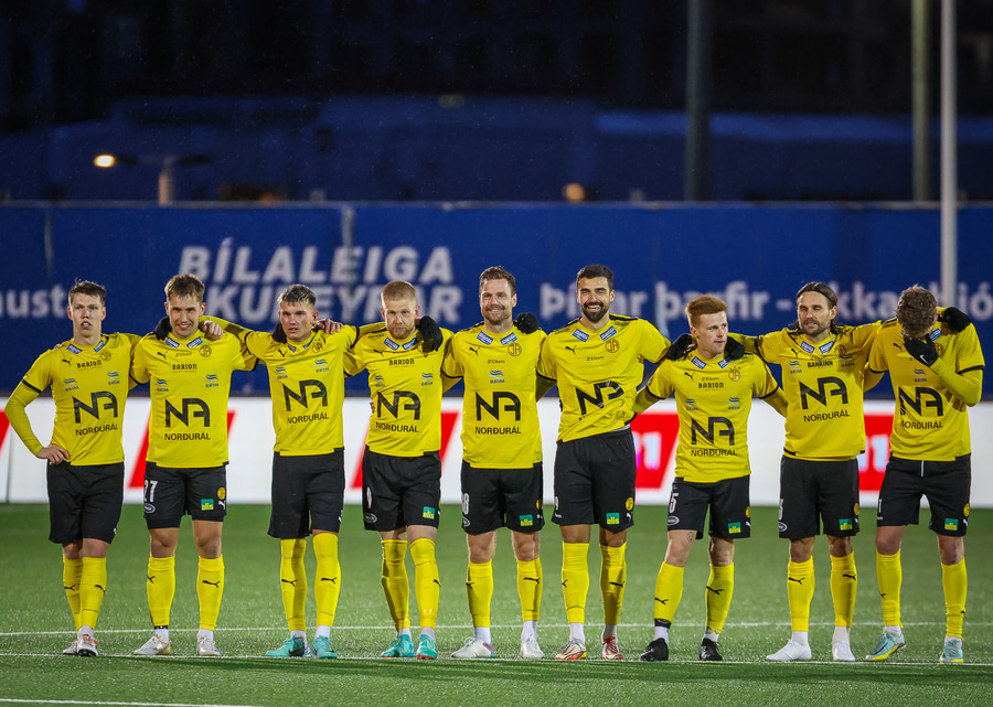 Viktor Jónsson á upphafsspyrnu leiksins og Skagamenn sækja í átt að Perlunni!