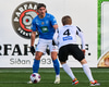 Hilmar Árni frá vinstri með boltann yfir á fjærstöng en gestirnir skalla frá marki sínu, Niðurstaðan annað horn sem ekkert kemur upp úr.